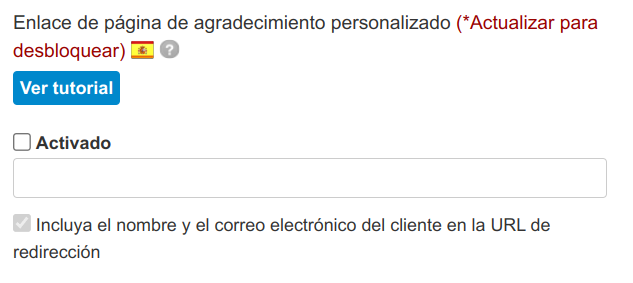 Para activar esta funcionalidad, debes dirigirte a la pestaña Compañía >>> Ajustes por defecto >>> Preferencias de página de agradecimiento >>> Enlace de página de agradecimiento personalizado. Aquí tienes que introducir la dirección de tu página y marcar la casilla como "Activado".