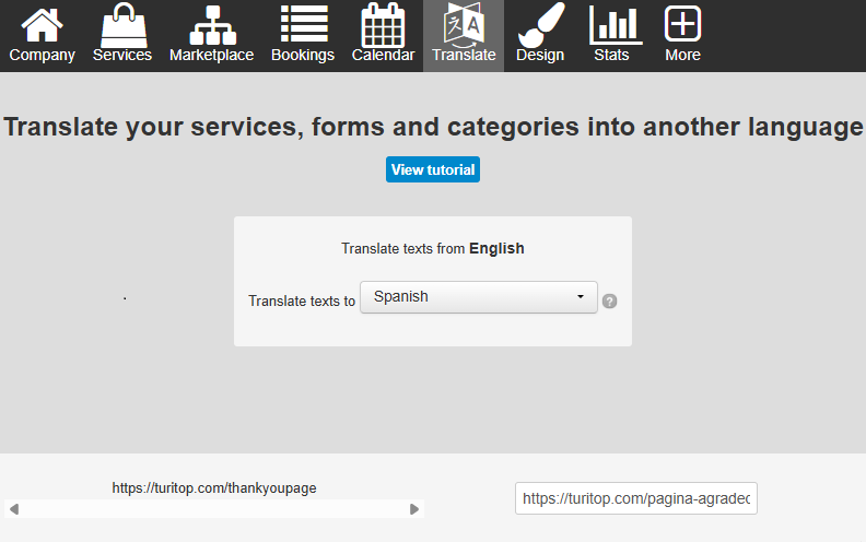 Recuerda introducir la URL correspondiente en cada uno de los idiomas que tengas activos en tu widget de reservas, para garantizar que la redirección funcione correctamente en todas las versiones. Puedes realizar este ajuste fácilmente desde la pestaña Traducir.